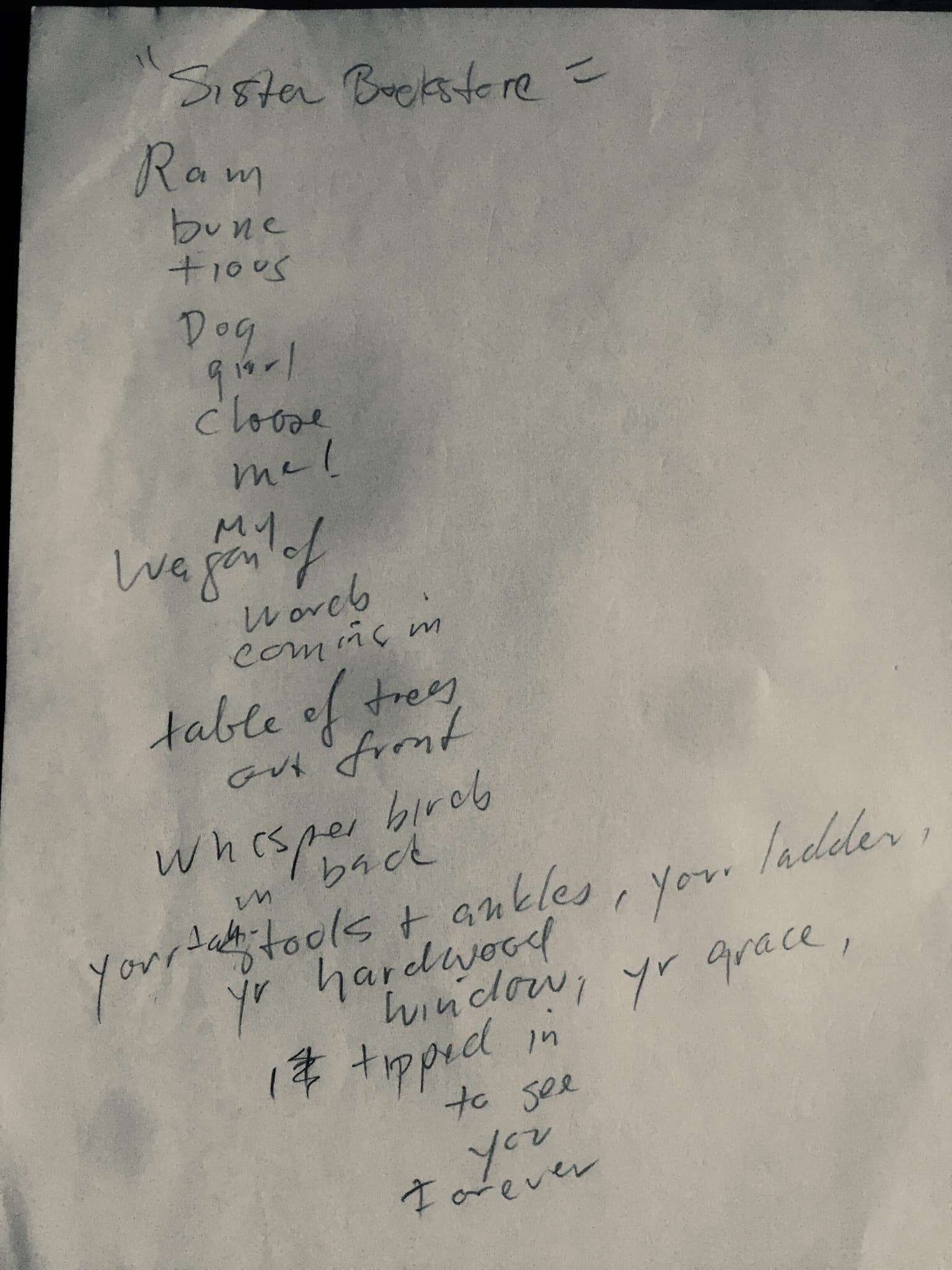 Here’s a spontaneous bookstore poem about Dog Eared Books or Phoenix Books in SF from way back. I woke up jumped out of bed and wrote it down. It’s called “Sister Bookstore” It goes:
