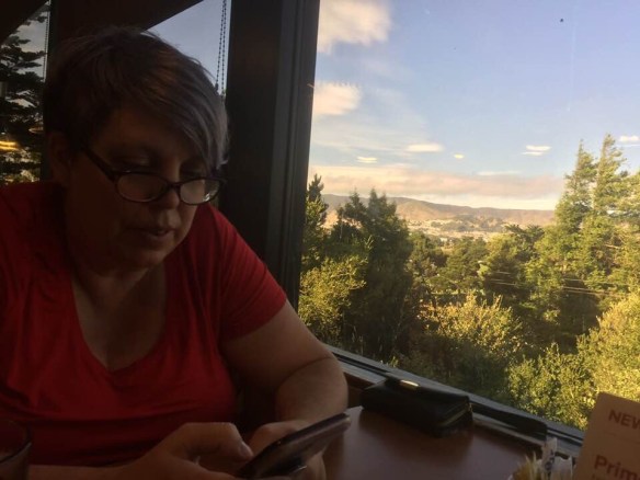 Marlene said, ”Let’s give them some space,” so we wandered back and leaned against the wall in the lobby, while the Guthries exchanged current emails and promised to write.