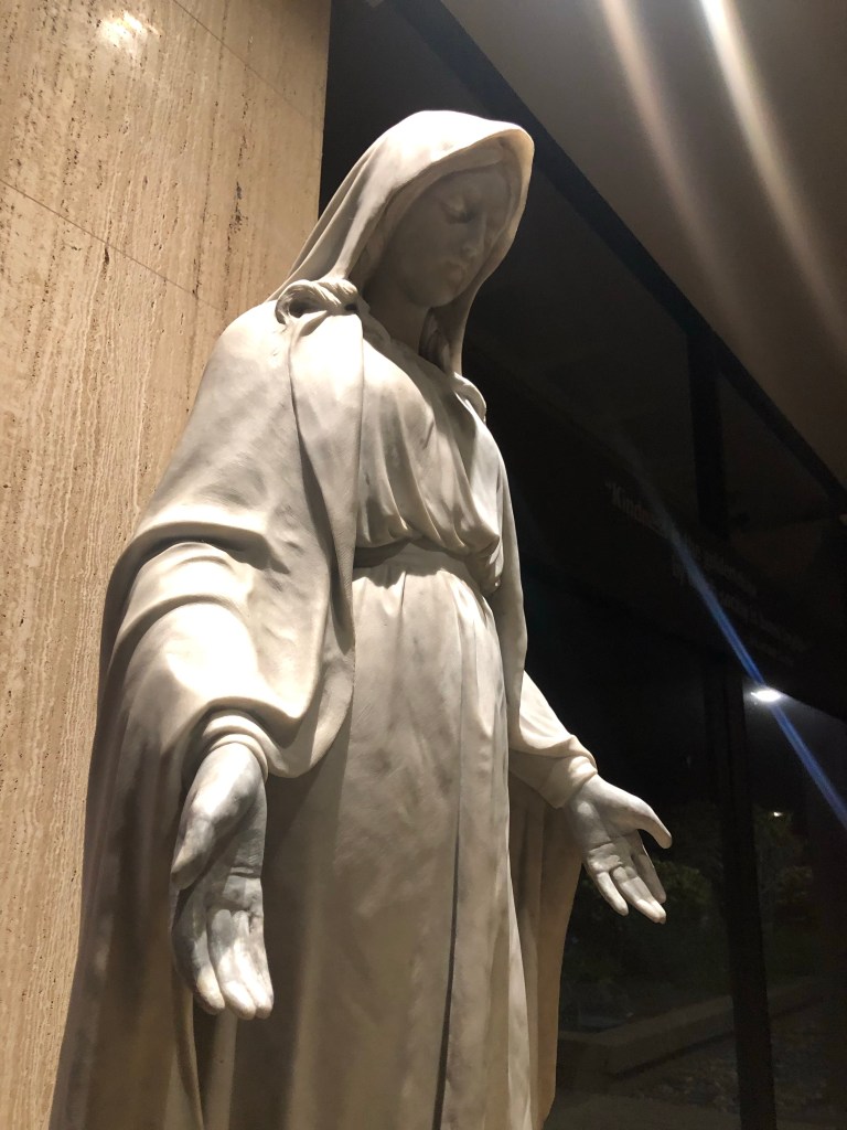 She a tiny lady, carries a clipboard, and wears the nun’s old fashioned wimple and she is old-school and elderly and appears in the corner of one’s eye out of the space of a deserted hallway, of which there are many in a hospital at night.