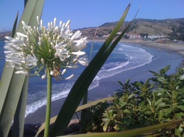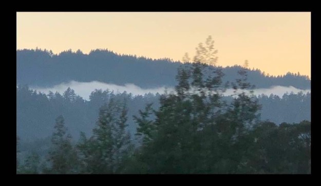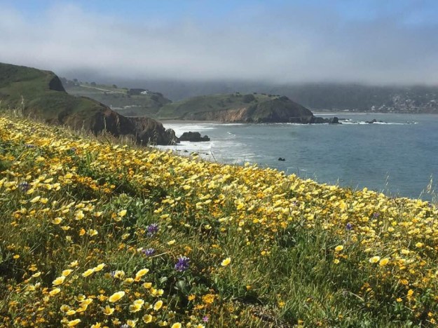 1. Ingrid at Linda Mar; 2. Granada green field; 3. Pacifica; 4. Oyster Point; 5. Sharp Park; 6. Mori Point; 7. Eastmoor view of Mt Tam; 8. Farallons sunset through binoculars; 9. Ingrid on Eastmoor, panoramic vista; 10. Mt St Helena, from the Mission, SF; 11. Mustard near Granada; 12. Wave, at Sharp Park; 13. Crystal Springs Reservoir; 14. Bay Bridge, during Paradise Fire; 15. Linda Mar landscape; 16. Filoli in black and white; 17. Blue Marin escarpment from my Eastmoor window through binoculars; 18. Avalon Beach, Daly City; Avalon Canyon (black and white); 19. Pacifica Mori Point; 20. Granada Princeton-by-the-Sea, green fields; 21. Ingrid at Eastmoor vista; 22. Mori Point flowers; 23. Redwood tree, Redwood City Hall; 24. Filoli olive trees; 25. Pacifica; Thornton Vista, Daly City; Ingrid at Pacifica pier; Villa Montalvo; bedroom window screen north to Marin from Daly City: home.